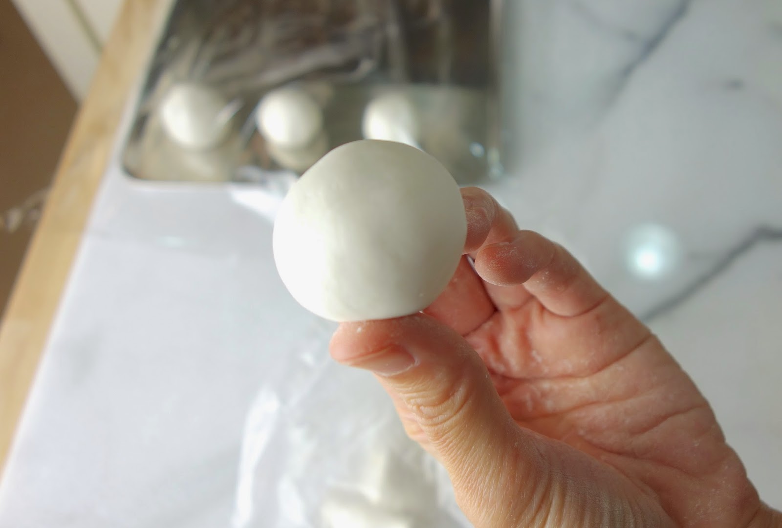 如果需要做成湯圓的餡料,可用小冰淇淋挖勺挖取餡料後,再用手塑成一個個球狀,放入冰箱冷藏即可!