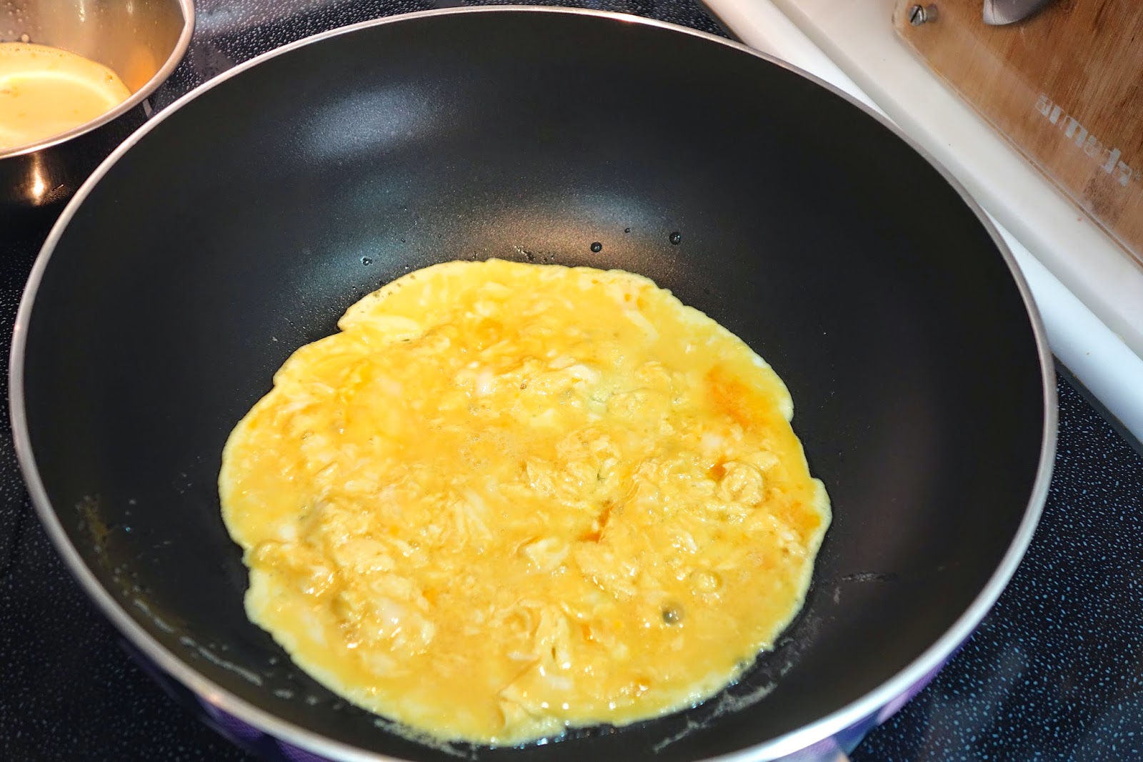 如果真覺得歐姆蛋困難,直接煎片蛋皮鋪在飯上,味道仍然保持,一樣很美味喔。
